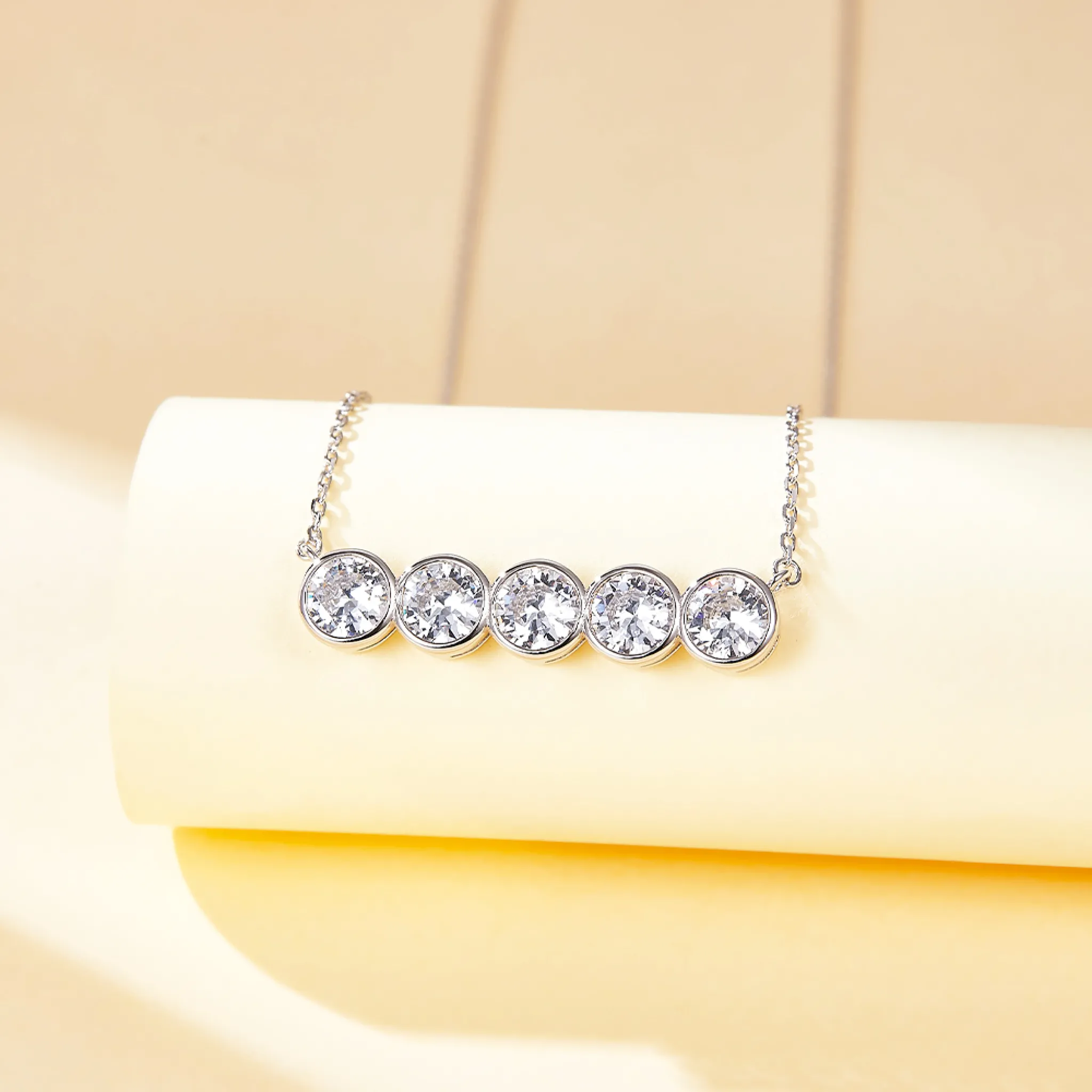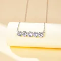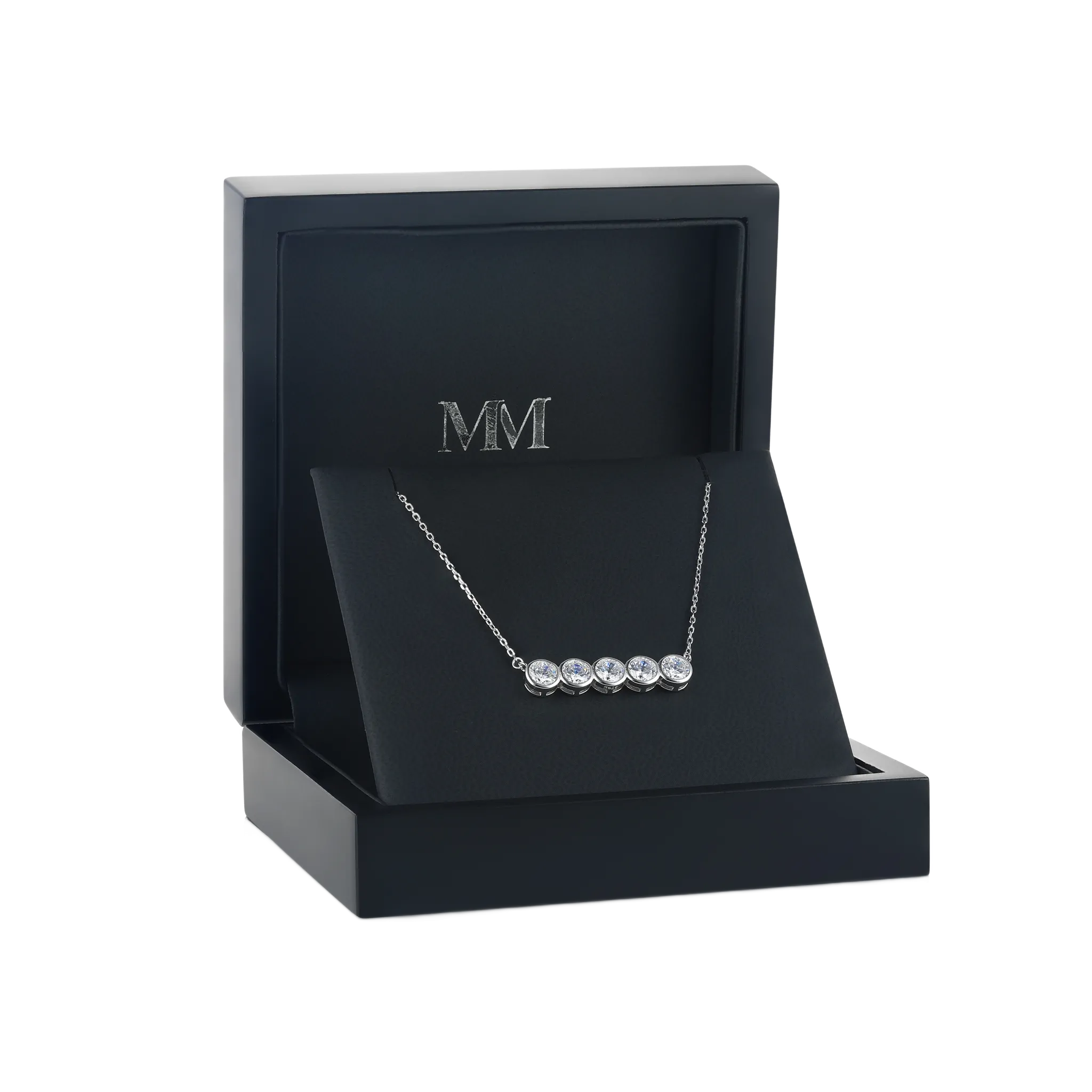 De Quinta ketting is een toonbeeld van minimalistische charme, met vijf prachtig geslepen moissanite stenen genesteld in een veilige kastzetting. Dit stuk heeft een verstelbare ketting van 40+5 cm, wat zorgt voor een perfecte pasvorm voor elke halslijn. Elke steen is meesterlijk uitgelijnd, wat resulteert in een elegante cascade die de aandacht trekt. Ontworpen om de Tri-Bezel oorbellen te complimenteren, vormt deze ketting onderdeel van een verfijnd ensemble. De precisie van de plaatsing van de stenen wordt weerspiegeld door de fijnheid van de ketting, waardoor de Quinta het toonbeeld is van verfijnd vakmanschap en stijl.