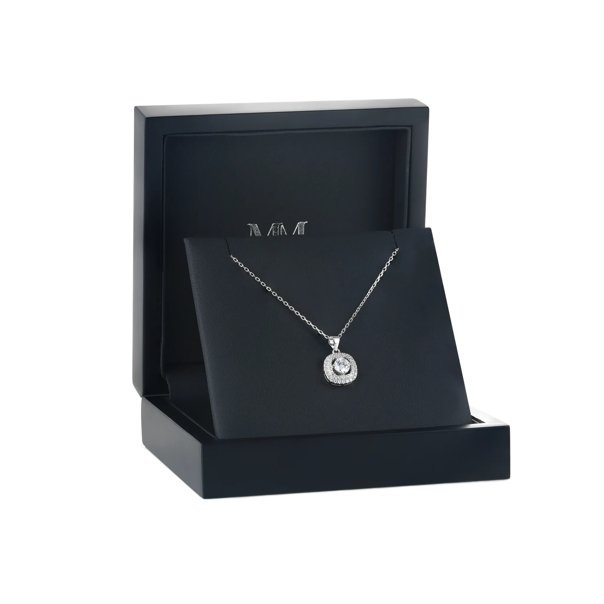 De Vivara hanger biedt een schitterende vertoning met een 5mm moissanite centrale steen, omringd door een ingelegde halo van 44 nauwkeurig gezette 1.1mm stenen. Dit sieraad vangt de essentie van verfijning en biedt een oogverblindende schittering die de aandacht trekt. Deze hanger is ontworpen om de kenmerkende helderheid van de moissanite te benadrukken in een zetting die zowel elegant als opvallend is. De ketting die op de afbeeldingen wordt getoond is inbegrepen, met een verstelbare lengte van 40 cm en een extra verlengstuk van 5 cm.