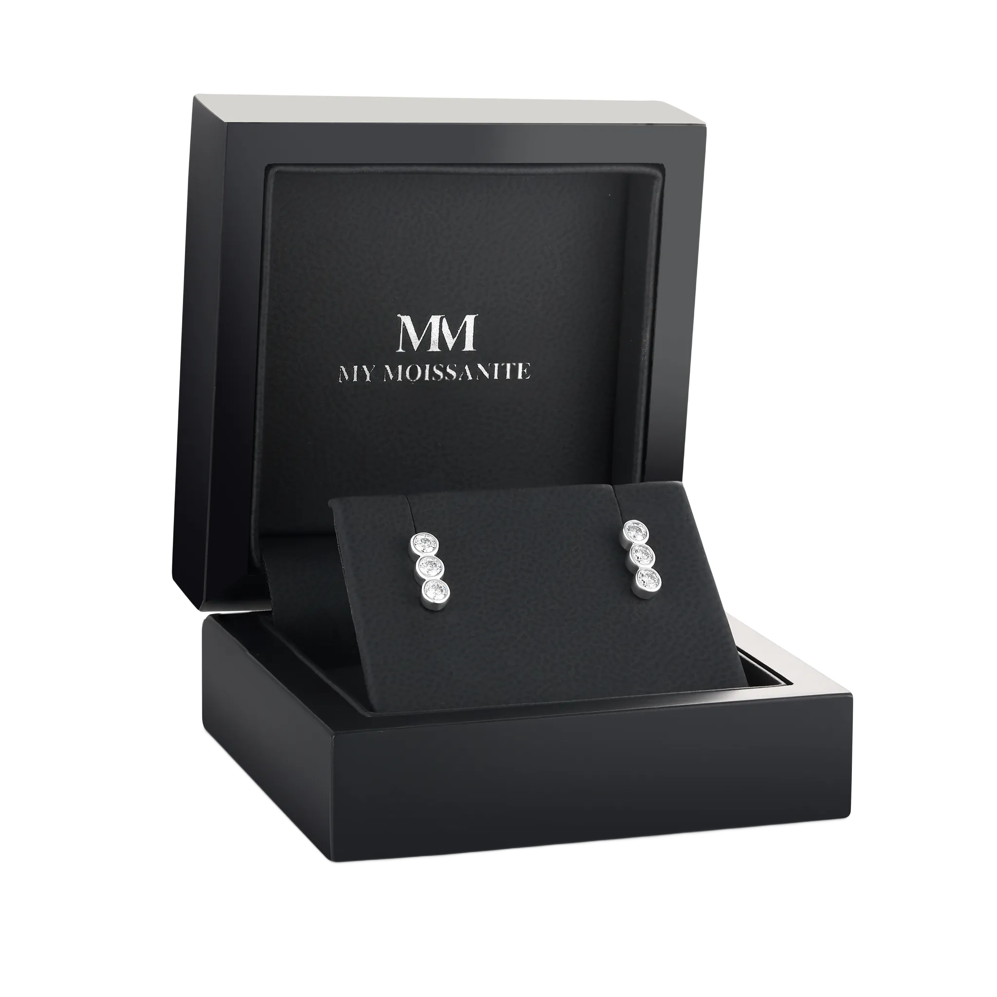 Onze tri-bezel moissanite oorbellen zijn de ultieme belichaming van verfijning en elegantie. De glinsterende moissanite stenen van 0.1 karaat zijn op een unieke en innovatieve manier gezet, die klasse uitademt. De kastzetting geeft een extra touch aan de verfijning, waardoor deze oorbellen de ideale finishing touch vormen voor elke stijlvolle outfit.