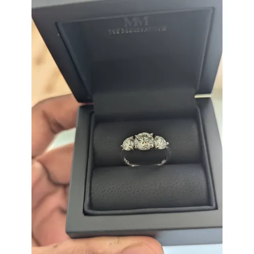 De Aventine ring is een bijzonder sieraad, waarbij een indrukwekkende 1.2 karaat moissanite steen centraal staat, geflankeerd door twee sprankelende zijstenen van elk 0.5 karaat. Symbolisch vertegenwoordigt deze ring met drie stenen het verleden, het heden en de toekomst, waardoor het een betekenisvolle manier is om de diepte en duurzaamheid van een relatie te erkennen en te vieren.