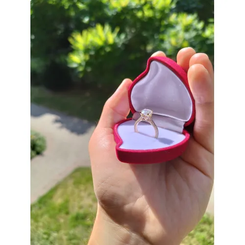 De Cassiane moissanite verlovingsring is het toppunt van schittering en glans. Met een verbluffende ronde middelste steen in een veilige vierpoots setting, is deze ring ontworpen om lichtreflectie te maximaliseren en zijn natuurlijke schittering te verbeteren. De hele band, poten en galerijrail zijn versierd met pavé-gezette moissanite accentstenen, waardoor elke hoek schittert met verblindend licht. Dit ontwerp combineert moeiteloos tijdloze elegantie met moderne verfijning, waardoor de Cassiane ring de ultieme keuze is voor een gedenkwaardige verloving.