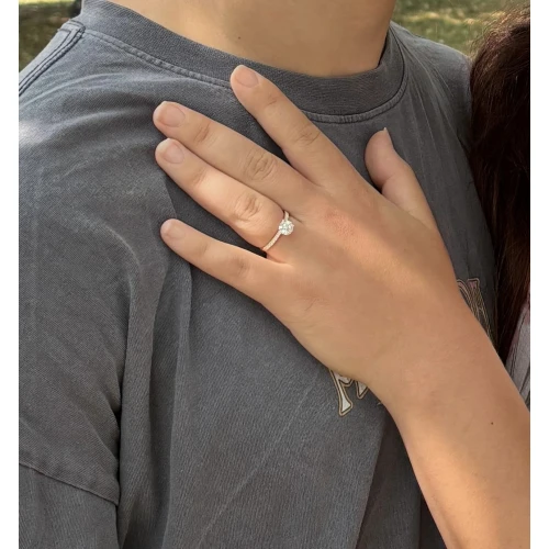 The ring looks absolutely stunning. Shines brighter than any diamond and is super durable. She been wearing it for at least 6 months and it’s as good as new. The whole experience was just great so thanks.